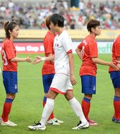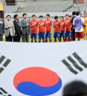 2013.07.21 18: 40한국-북한 한국 여자대표팀,'가슴에 손을 얹고'
