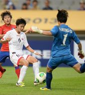 2013.07.21 19: 38한국-북한 지소연,'북한 수비 만만치 않네'