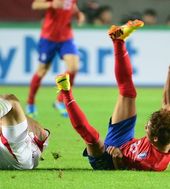 2013.07.24 20: 42대한민국-중국, 거친 태클 넘어지는 윤일록