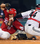 2013.07.24 20: 14김주찬-윤요섭,'아웃이냐 세이프냐'