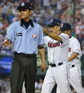 2013.07.26 20: 26정성훈 타구 관련 어필하는 LG 김기태 감독