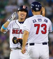 2013.07.26 20: 06김재호, '3회 기막힌 역전에 환호하며'