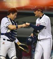 2013.07.26 22: 18홍상삼-양의지, '멋지게 막아냈어'