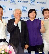 2013.07.27 15: 28파이팅 외치는 김한기 대표이사와 장미란 재단 멘토들