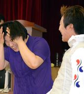 2013.07.27 15: 33밝은표정으로 파이팅 외치는 장미란 재단 멘토와 김한기 대표이사