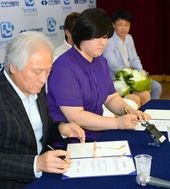 2013.07.27 15: 42협약서에 사인하는 장미란과 김한기 대표이사