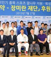 2013.07.27 15: 32파이팅 외치는 장미란 재단 멘토들과 김한기 대표이사