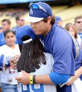 2013.07.27 13: 10김유정 류현진,다저스타디움에서 뜨거운 포옹