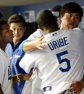 2013.07.28 15: 21류현진,'우리베와 감격의 포옹'