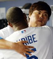 2013.07.28 15: 19우리베-푸이그,'류현진 9승 미리 축하해'