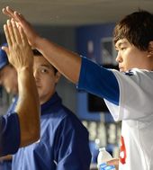 2013.07.28 15: 24류현진,'푸이그-우리베의 축하를 받으며'