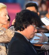 2013.07.29 19: 51레드카펫에서 팬들과 만나는 봉준호-틸다 스윈튼