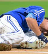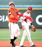 2013.07.30 18: 37타구에 무릎 맞은 배영섭, '너무 아프다'