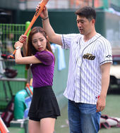 2013.08.01 17: 19배트 든 정순주 아나,'마음만은 홈런타자~'