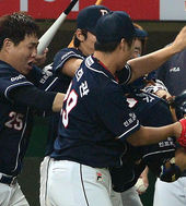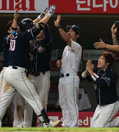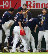 2013.08.04 21: 00'홈런 치고 집단 구타(?) 당하는 김현수'