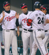 2013.08.04 19: 35김기태-이병규,'역전의 손가락 하이파이브'
