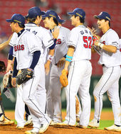 2013.08.06 22: 02봉중근-윤요섭,'실점없이 잘 막았어'