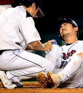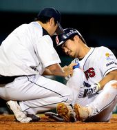 2013.08.07 20: 51사구 맞은 오재원,'나 아파요'
