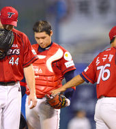 2013.08.08 21: 05류택현,'몸에 볼 맞추며 만루 위기'