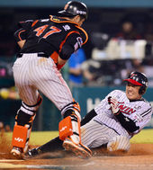 2013.08.08 20: 16윤요섭,'강민호! 태그가 늦었다고!'
