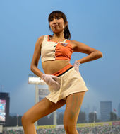 2013.08.09 19: 41롯데 치어리더 박기량,'섹시한 복근'