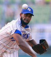 2013.08.09 20: 14한화전 나서는 삼성 새용병 카리대의 첫 선발등판