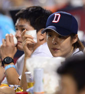 2013.08.10 20: 42잠실구장 찾은 현영,'신랑과 함께 왔어요'