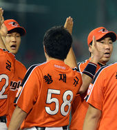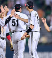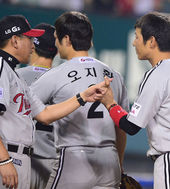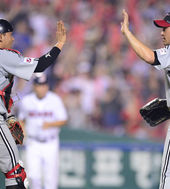 2013.08.11 21: 53봉중근-윤요섭,'피홈런 하나 허용했지만 수고했어'