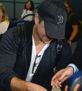 2013.08.13 18: 19모자 쓴 맷 데이먼,'장시간 비행엔 편안함이 최고'