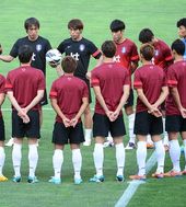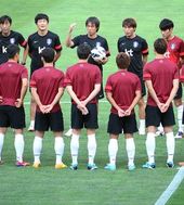 홍명보 감독, '훈련을 위해 원을 만들자'