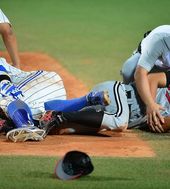 2013.08.13 21: 05조동찬, '문선재와 충돌 후 들것에 실려 그라운드 밖으로'