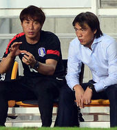 2013.08.14 22: 16경기 후 이야기 나누는 홍명보 감독-김태영 코치