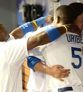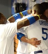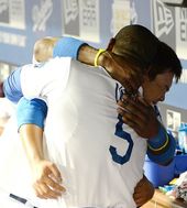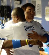 2013.08.14 13: 19류현진-유리베,'다정한 포옹'
