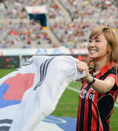 2013.08.15 19: 11신보라,'시축 마치고 광복절 태극기 세레모니!'