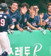 2013.08.15 18: 27두산 더그아웃, '이종욱 선제 솔로포에 싱글벙글'