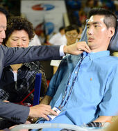 2013.08.15 14: 12박승일에게 명예 사원증 전달하는 한선교 총재