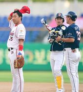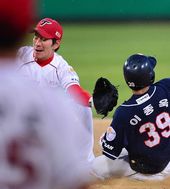 2013.08.16 19: 06홍성흔, '이범호, 1루는 처음이지?'