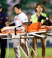 2013.08.16 21: 34부상으로 병원후송되는 추승우,'큰 부상이 아니길'