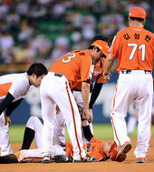 2013.08.16 20: 47주루플레이서 쓰러진 추승우,'큰 부상이 아니길'