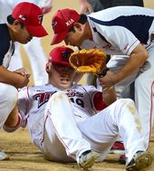 2013.08.16 20: 07김진우, '1루 수비 중 아찔한 부상'