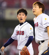 2013.08.17 21: 21김현수,'명준아! 네 첫 세이브 기념구 팬들한테 던져도 될까?'