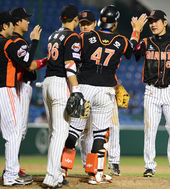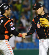 2013.08.20 21: 45정대현-강민호,'멋진 승리야!'