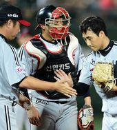 2013.08.20 21: 05류제국-이병규, '신정락, 피칭 좋았어'