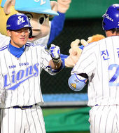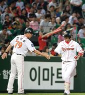 2013.08.22 19: 52진갑용,'동료들과 신나는 동점포 하이파이브'