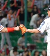 2013.08.22 21: 22투런포 진갑용,'김재걸 코치와 힘찬 하이파이브'
