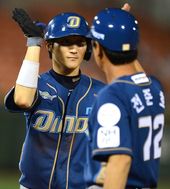2013.08.23 21: 39오재원,'득점 신고합니다 감독님'