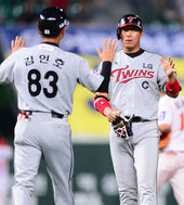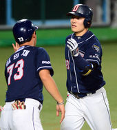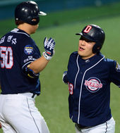 2013.08.23 20: 19민병헌,'김현수와 솔로포 하이파이브'