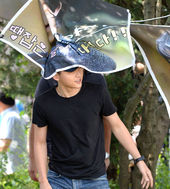 입대 송중기,'팬들이 준비한 응원 현수막 사이로 쏙'