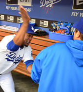 2013.08.27 12: 21류현진-유리베,'하이파이브는 이렇게!'