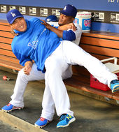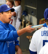 2013.08.27 11: 16유리베,'류현진 내 무릎에 누워봐!'